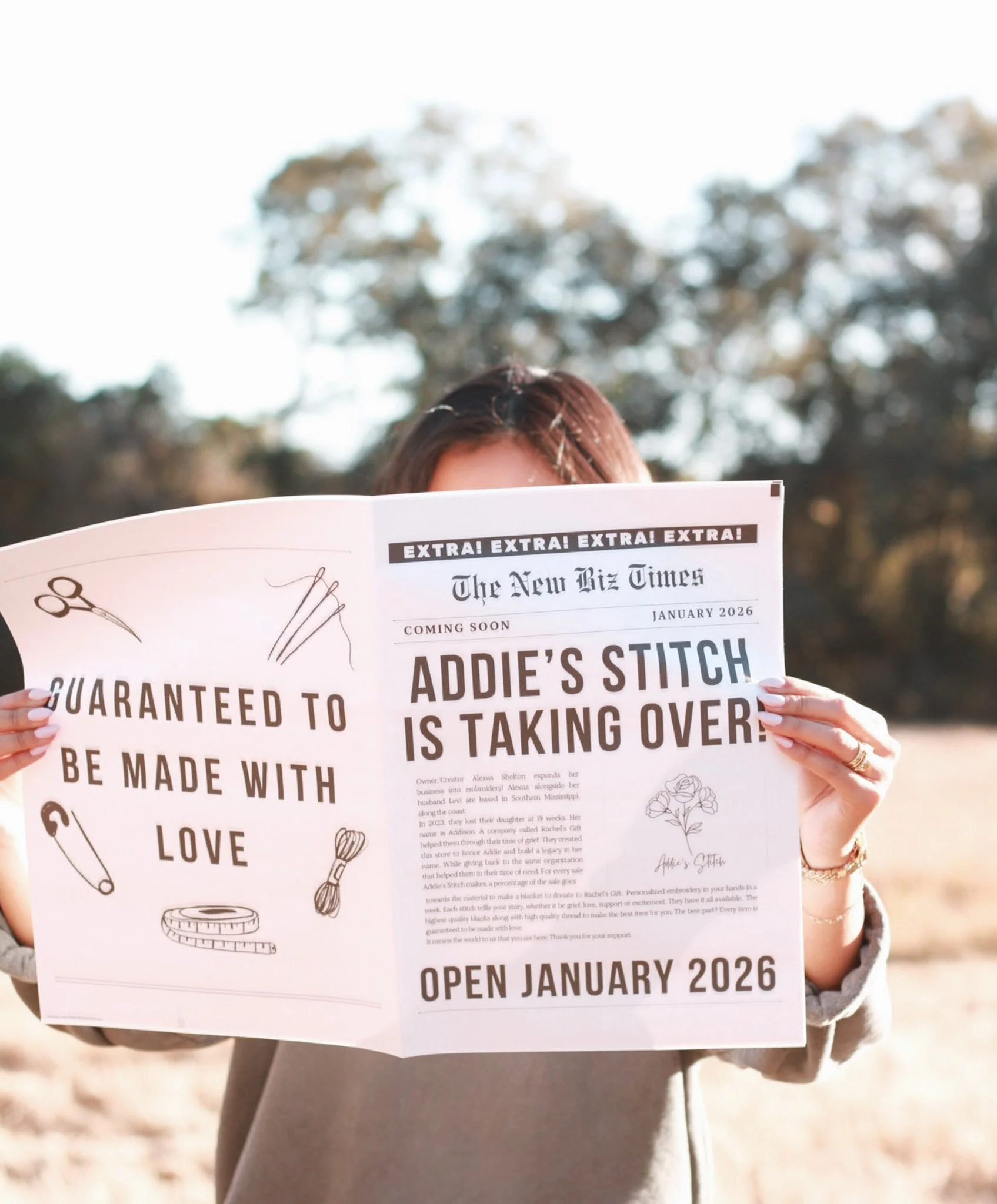 In 2023, we lost our daughter at 19 weeks. Her name is Addison. A company called Rachel’s Gift helped us through our time of grief. We created this store to honor Addie and build a legacy in her name. While giving back to the same organization that helped us in our time of need. For every sale Addie’s Stitch makes, a percentage of the sale goes towards the material to make a blanket to donate to Rachel’s Gift.